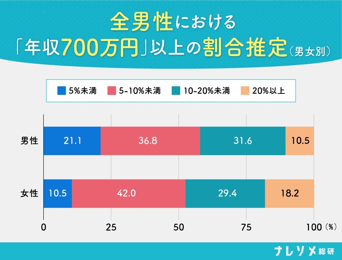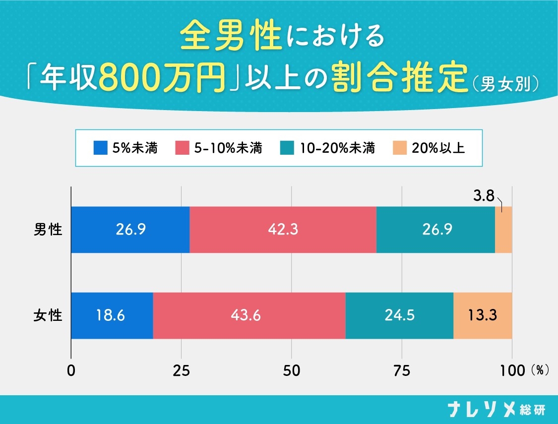 女性はハイスペ男性の割合を多く見積もる?年収ライン別「その年収を稼ぐ男性はどれくらい存在する?」の回答結果