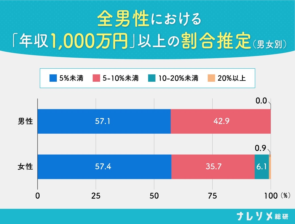なお、令和5年 民間給与実態統計調査によると、全男性のうち年収1,000万円以上は約8.6%です。