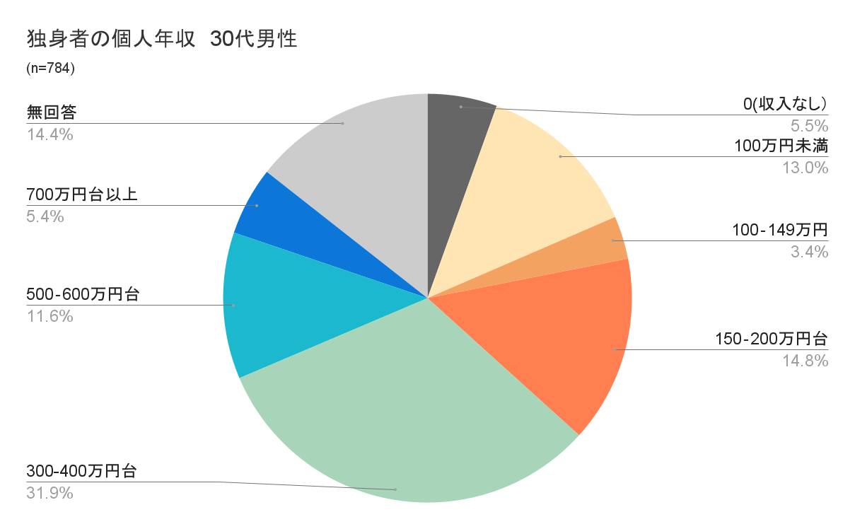 令和4年に内閣府が発表したデータによると、年収500万円以上の独身男性は20代で7%、30代で17%です。男性が100人いる中で、たったの7人……と考えると、かなり狭き門だと言えます。