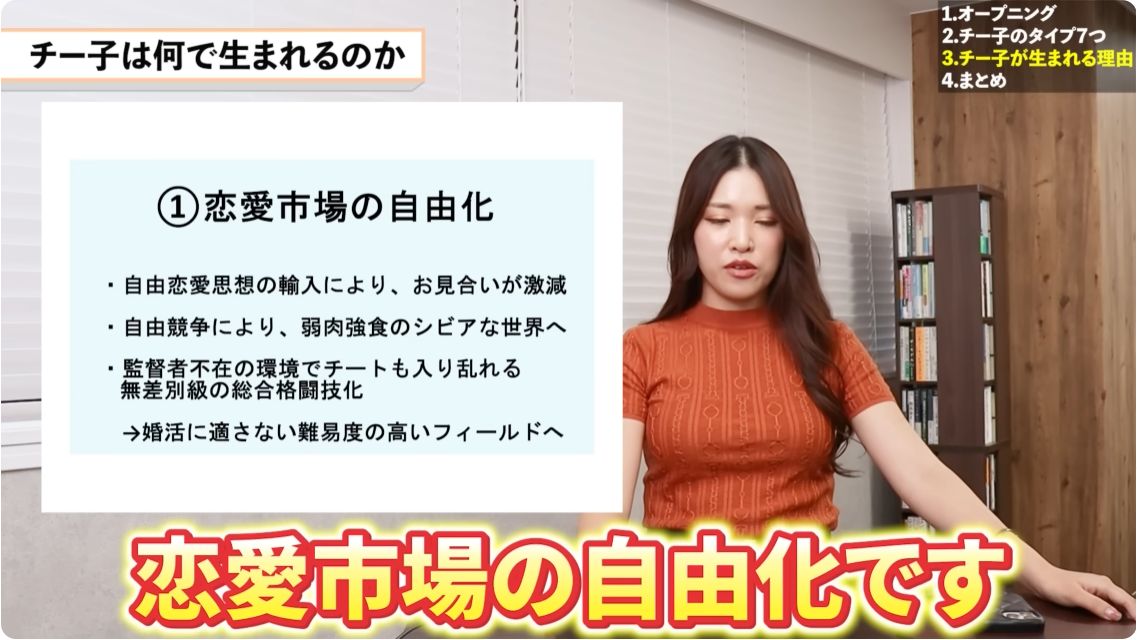 ポリコレの影響で「結婚する・しないは個人の自由」となった一方で、「結婚できるタイミングを逃さないための視点」すら奪われてしまったのが、現代のチー子増加の大きな要因の1つである。