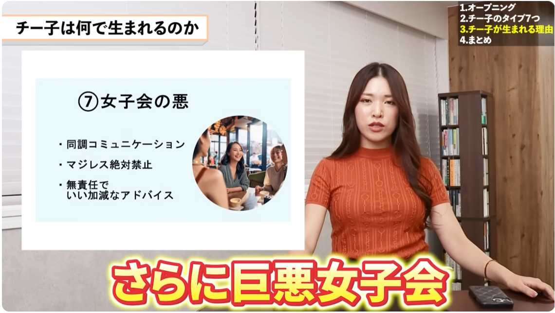 最後に、チー子を負のループへと導くのが「女子会」だ。
