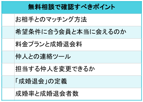 もし無料相談に行った相談所が成婚率や成婚者数を公開していなかった場合、実績について必ず質問しておきましょう。