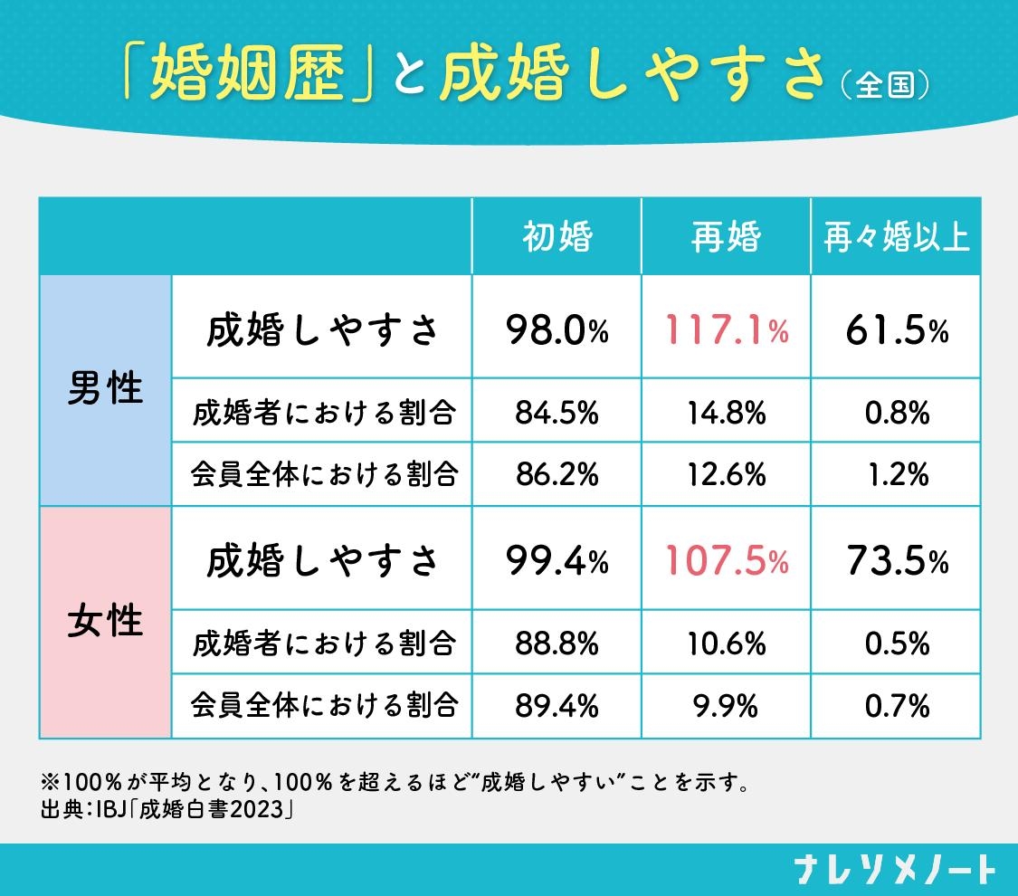 特にバツイチ男性の再婚成婚率の高さは目を引きますね。