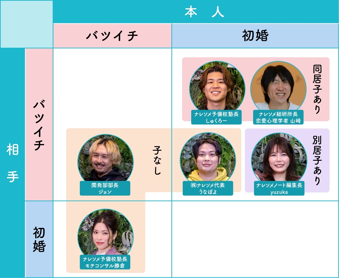 そして実は、結婚相談所ナレソメ予備校の運営陣は、バツイチ婚経験者ぞろい。