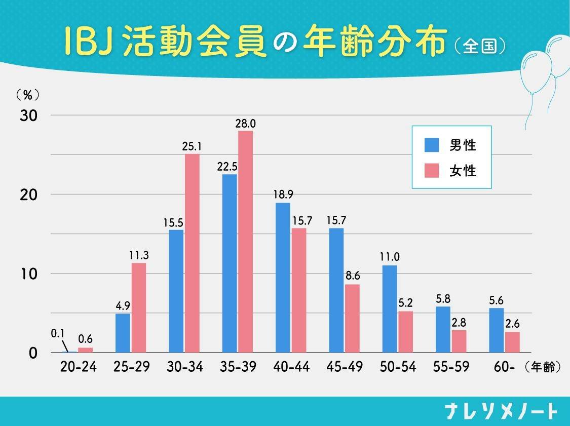 まずは、総会員数9万人と日本最大級の結婚相談所連盟であるIBJが公開しているデータを参考にしながら、結婚相談所に実際にいる「売れ残り女性」について、ひも解いてみましょう。