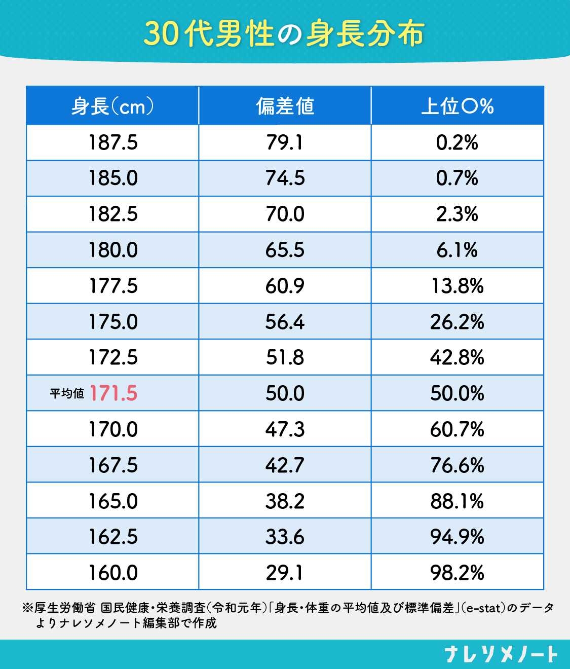 ※データ出典:厚生労働省 国民健康・栄養調査(令和元年)「身長・体重の平均値及び標準偏差」(e-stat)