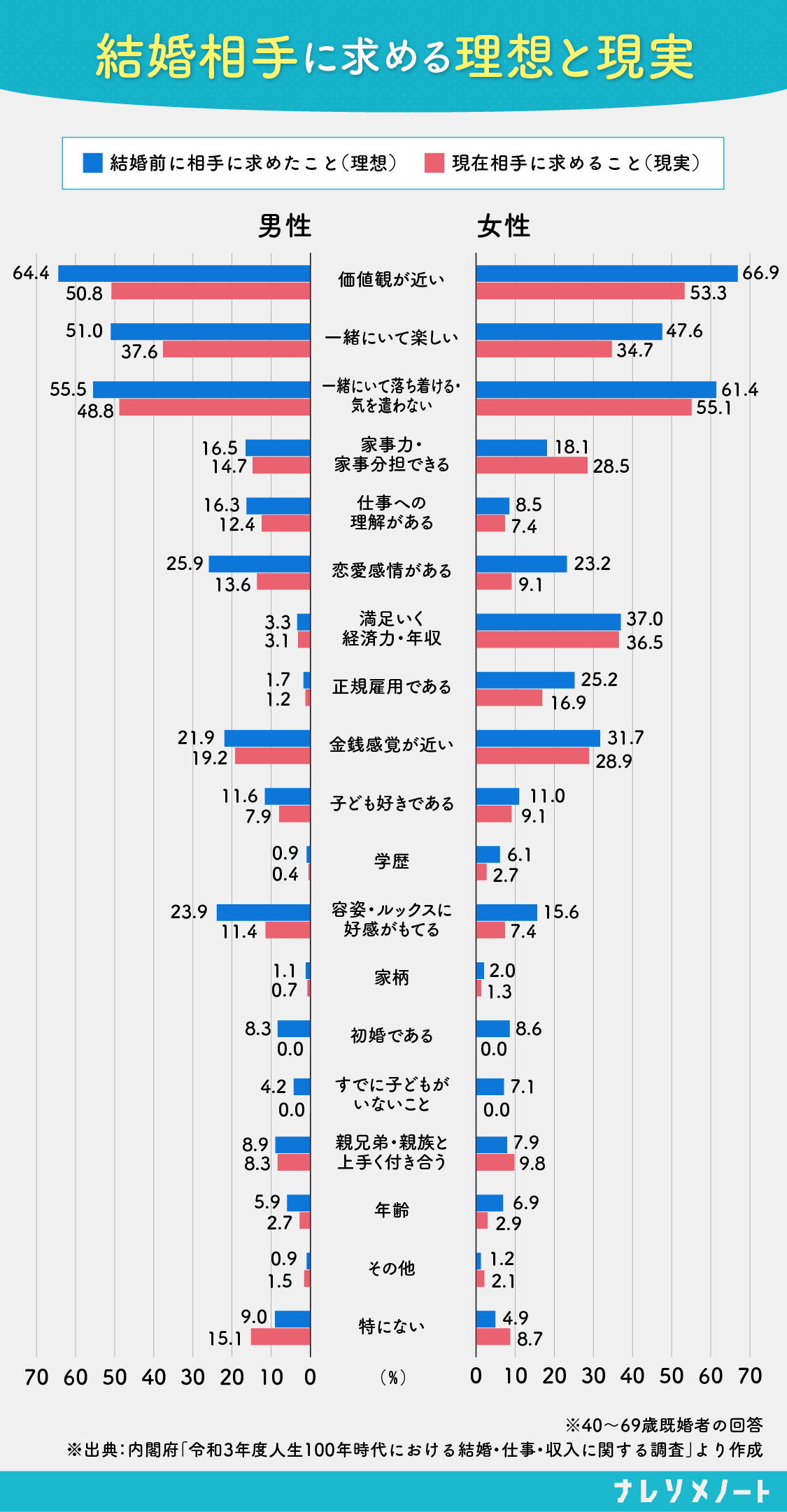 ※2 データ出典:内閣府男女共同参画局「令和3年度 人生100年時代における結婚・仕事・収入に関する調査報告書」