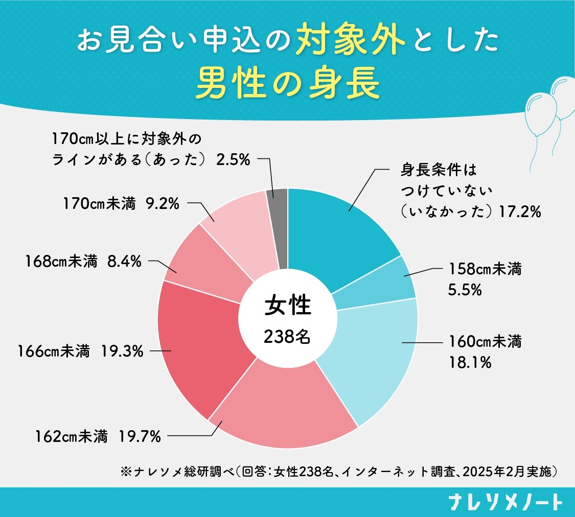 ちまたでよく言われる「170cm未満は対象外」とする女性は、意外にも10%弱にとどまることが分かった。